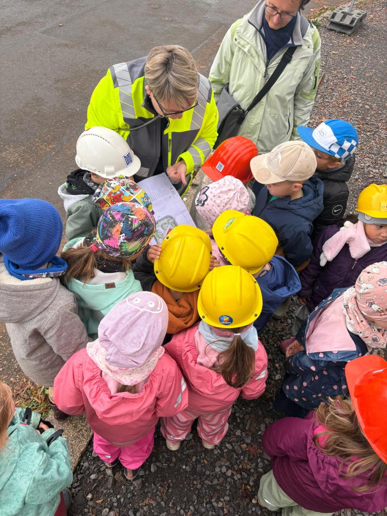 Am vergangenen Donnerstag, 23. Oktober 2025, besuchte eine Gruppe der Kita Zwötzener Spatzennest die Baustelle am Fritz-Reuter-Platz, wo derzeit ein neuer Themenspielplatz errichtet wird. Gemeinsam mit zwei Erzieherinnen und Einrichtungsleiter Felix König konnten sich die 18 Kinder dabei selbst ein Bild davon machen, wie ihre Idee einer Ritterburg allmählich Gestalt annimmt.