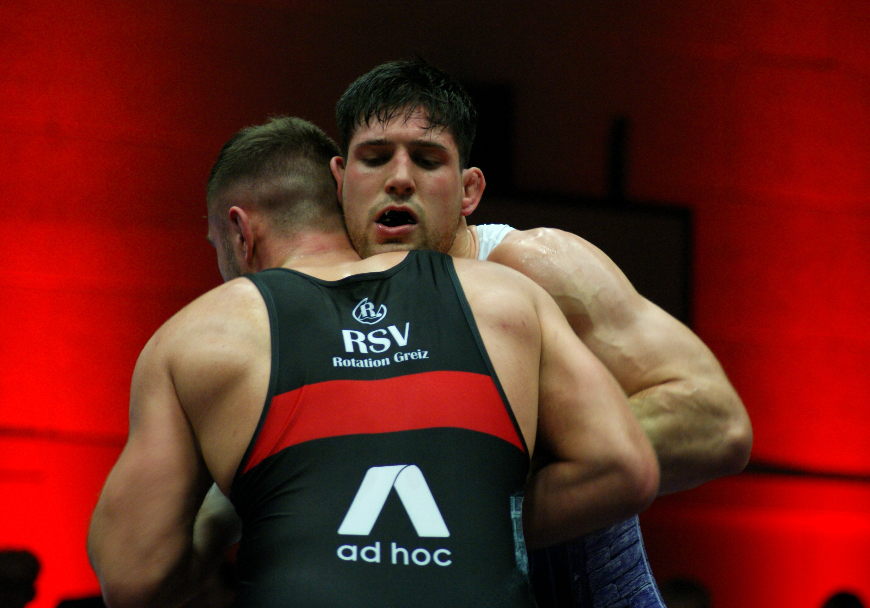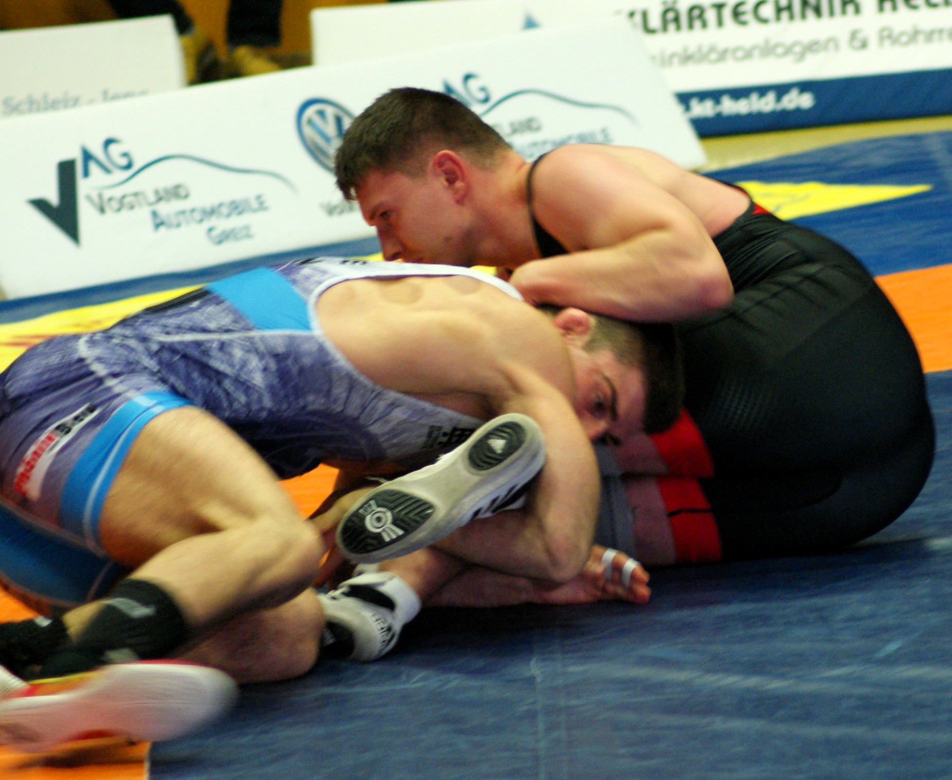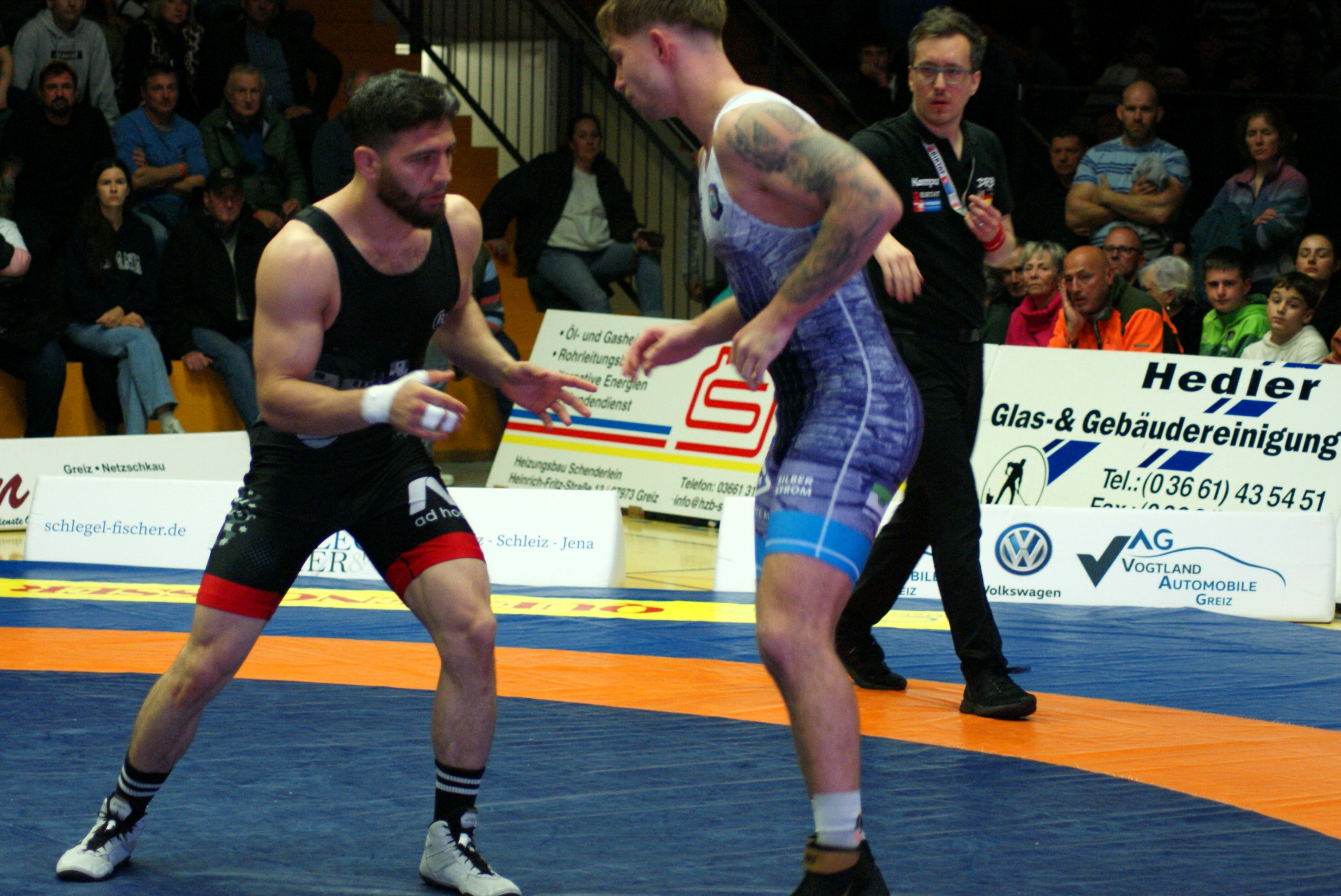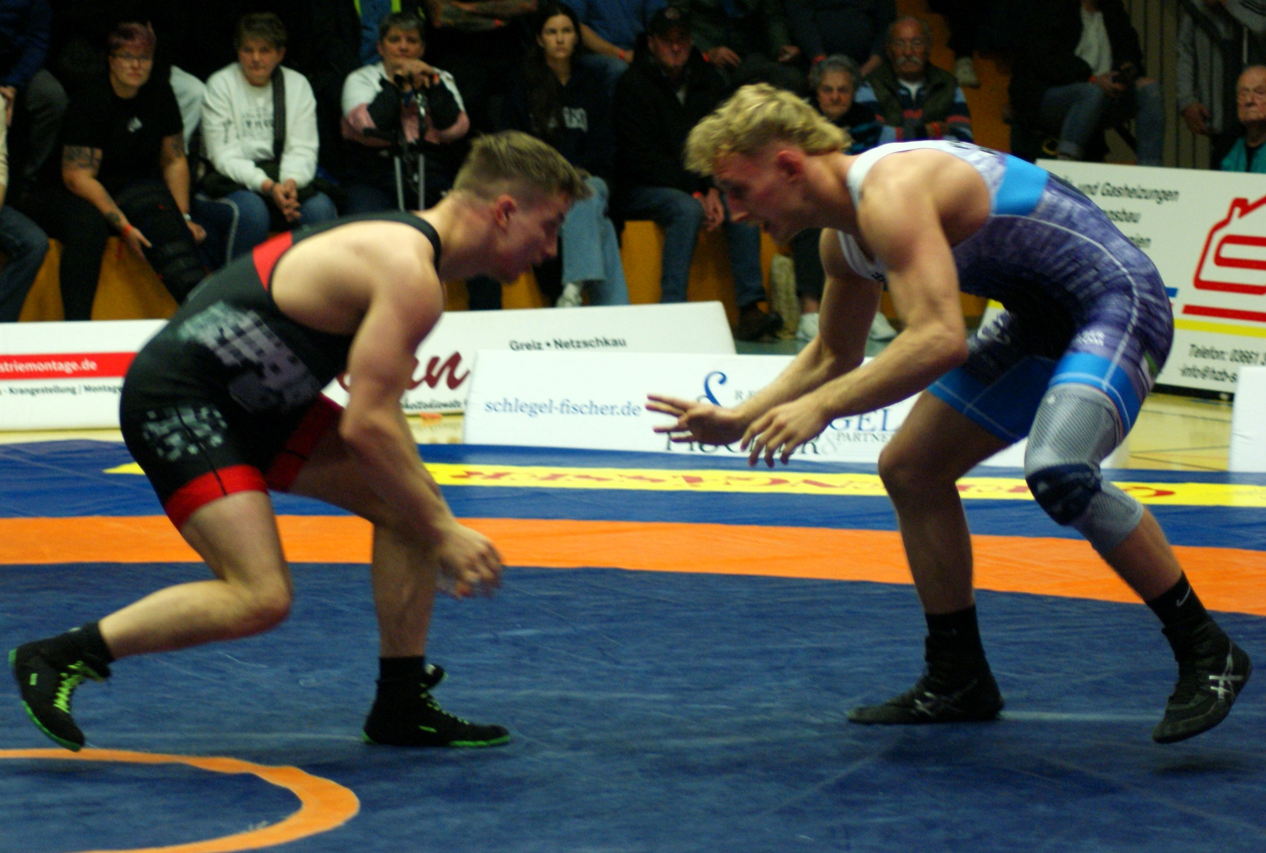 Maximilian Kahnt hatte vor 14 Tagen einen riesigen Anteil am Sieg gegen Markneukirchen. Nun hieß es eine Gewichtsklasse höher in der anderen Stilart gegen den auch schon in Greiz aktiven Witas Behrendt den Vorsprung der Gäste nicht größer werden zu lassen. Das gelang aber nicht wie erwartet. Zur Pause war die anfängliche Führung durch den Bodenkampf in einen 1:3 Rückstand verwandelt. Nach der zweiten angeordneten Bodenlage stand es 1:8. Leider wuchs der Rückstand bis zum Ende des Kampfes auf 8 Punkte an, so dass der Gästeringer beim 4:12 doch noch drei Mannschaftspunkte erkämpfen konnte. (2:11)