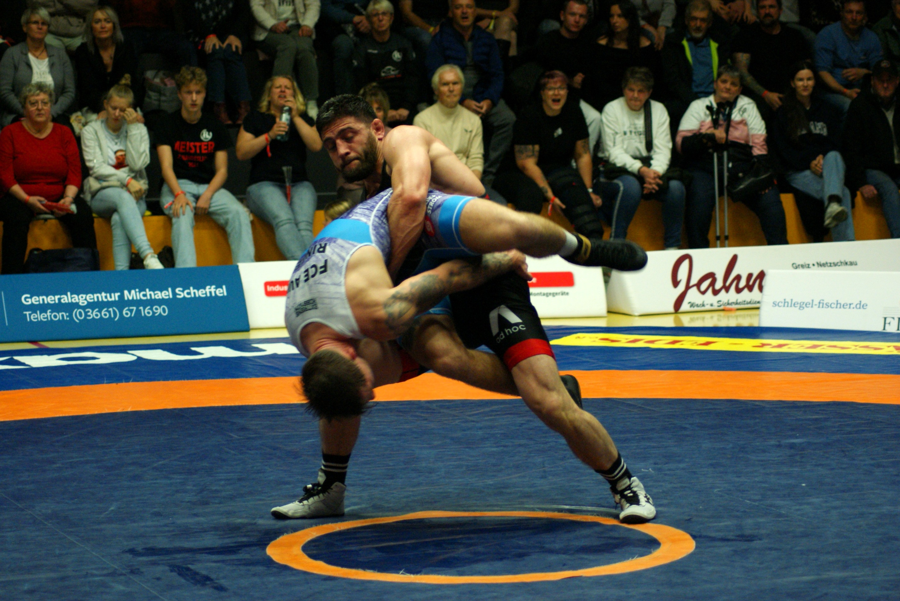 So auch diesmal – nach neun Kämpfen, vor der abschließenden letzten Begegnung, stand der Mannschaftskampf vor der Rekordkulisse von 980 zahlenden Zuschauern ausgeglichen 11:11. Der letzte Fight musste entscheiden, und den entschied der Greizer Aleksa Ilic souverän durch Technische Überlegenheit gegen Maximilian Becher für sich. Außer den Serben im RSV-Trikot gewannen für die Gastgeber Richard Karelson, Niklas Nimtz, Cengiz Arslan, Nicolai Grahmez und Moritz Langer ihre Kämpfe. Für die Gäste aus Aue verließen Teetje Richter, Alexandru Bors, Vasile Diacon und Witas Behrendt die Matte als Sieger.