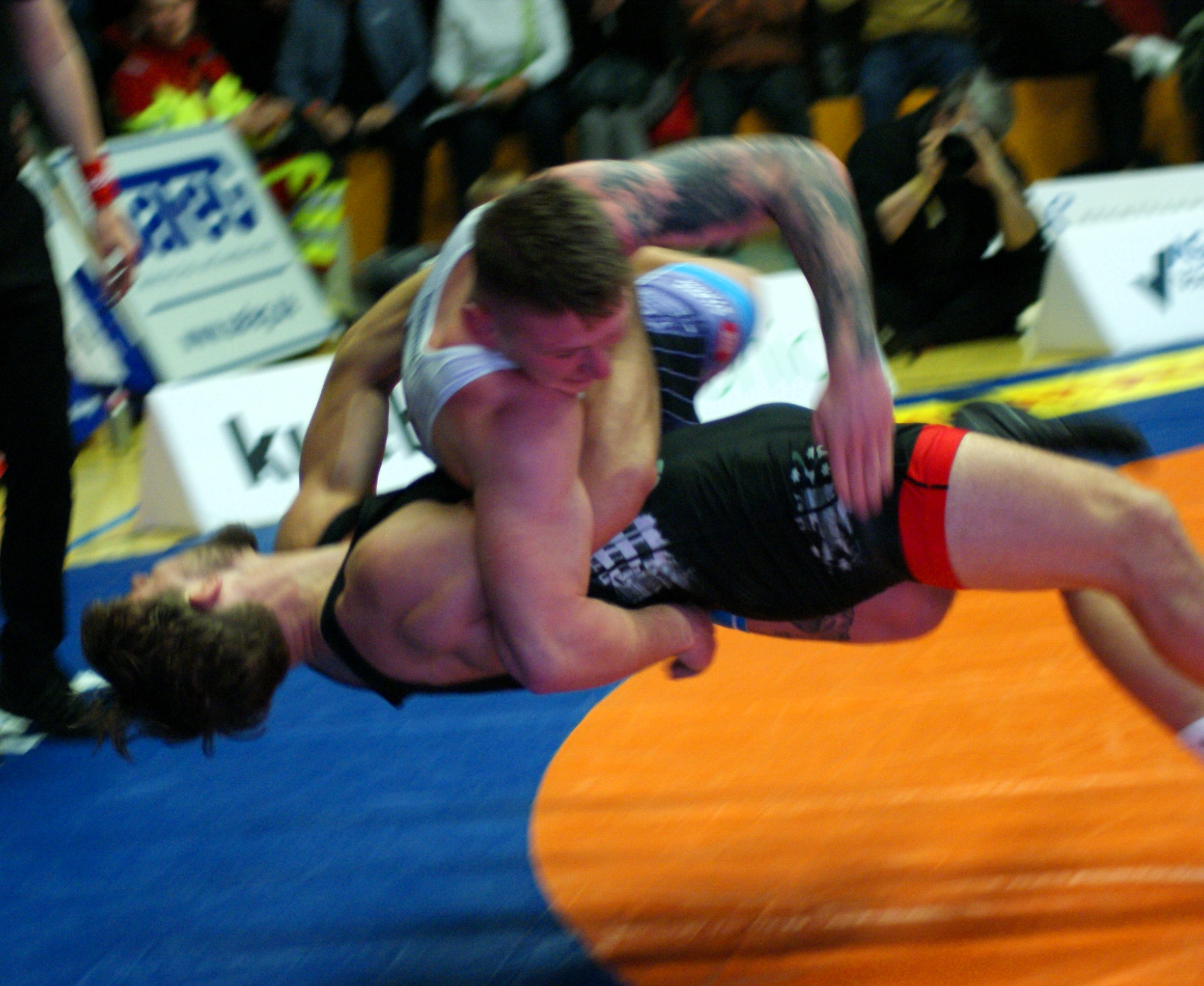 Dieser Kampf nahm nun einen gegenteiligen Verlauf. Gästeringer Mark Wagner, dominierte leicht in der ersten Halbzeit, Niklas Nimtz hingegen hatte das bessere Ende für sich. Beide Sportler kamen weder im Stand noch im Boden zu technischen Punkten, so dass der Greizer durch die letzte Wertung zum Sieger erklärt wurde. (2:3)