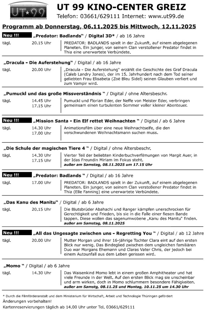 Drei neue Filme ab 6. November und eine Einladung mit „Karlchen“ für die Jüngsten.