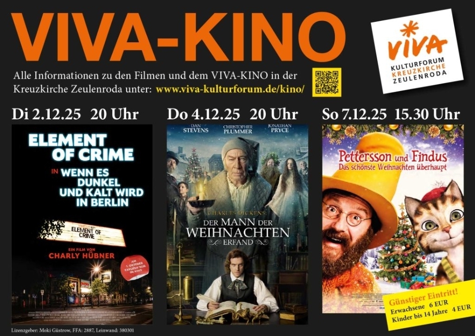 Das VIVA Kuluturforum lädt im November zu diesen Filmen in die Kreuzkirche ein: