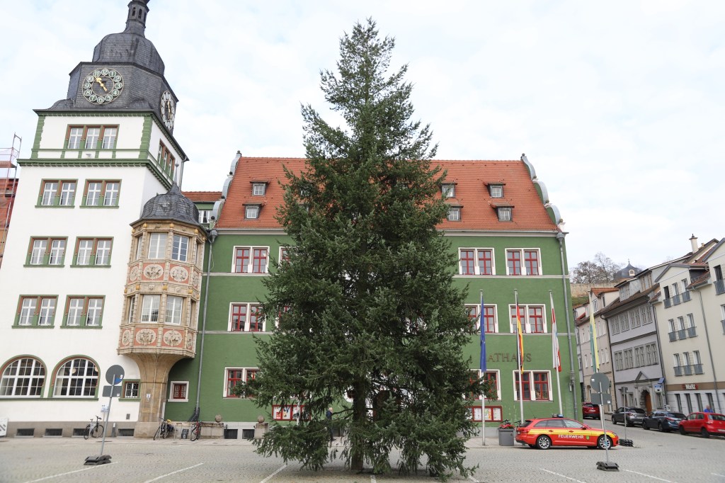 Seit gestern (10. November) schmückt wieder ein prächtiger Weihnachtsbaum den Rudolstädter Marktplatz. Die rund 14 Meter hohe Rotfichte stammt aus der Tiergartenstraße in Rudolstadt-Schwarza und ist eine Spende einer Rudolstädter Familie. Der Baum wird den zentralen Punkt des Rudolstädter Weihnachtsmarktes „Schillers Weihnacht“ bilden, der am 26. November 2025 eröffnet wird.
