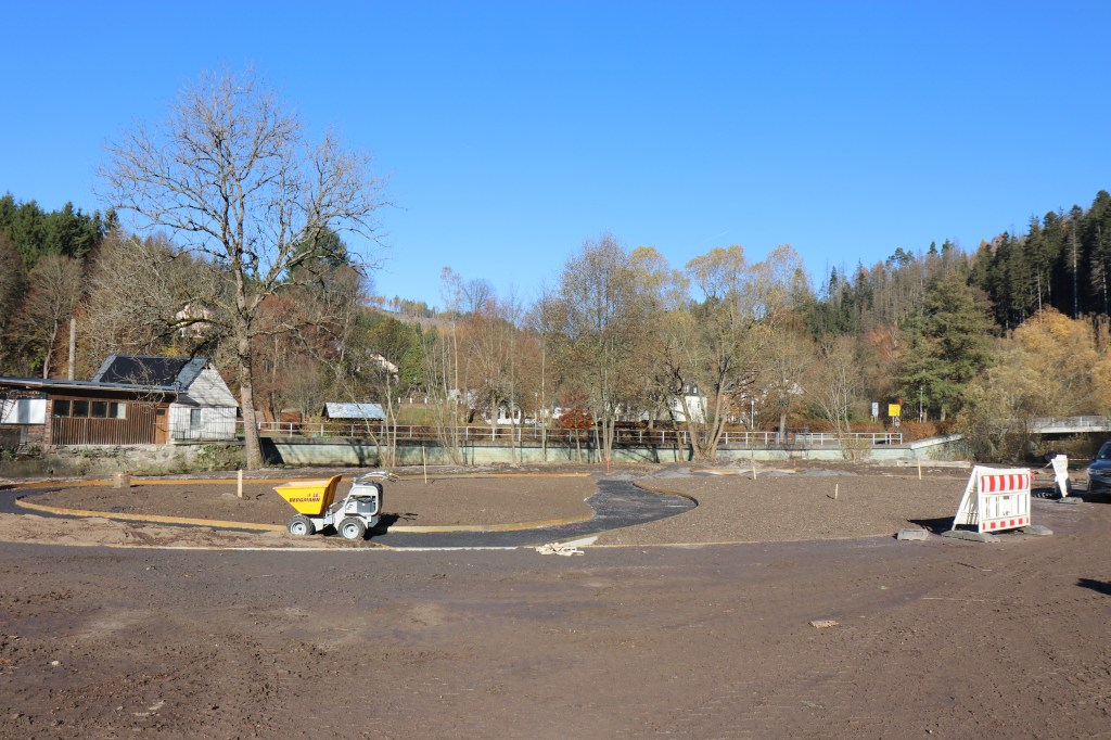 Das nächste IBA-Projekt der Wasserfrische Schwarzatal nimmt Gestalt an: Derzeit gleicht das Areal am Bahnhof Schwarzmühle noch einer großen Baustelle – doch die Konturen des künftigen Naherholungsgeländes sind schon sichtbar.