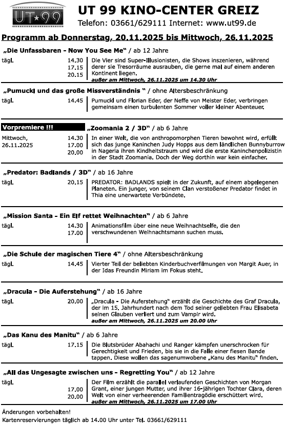Acht Filme im Programm und am kommenden Mittwoch die Vorpremiere von „Zoomania 2“.