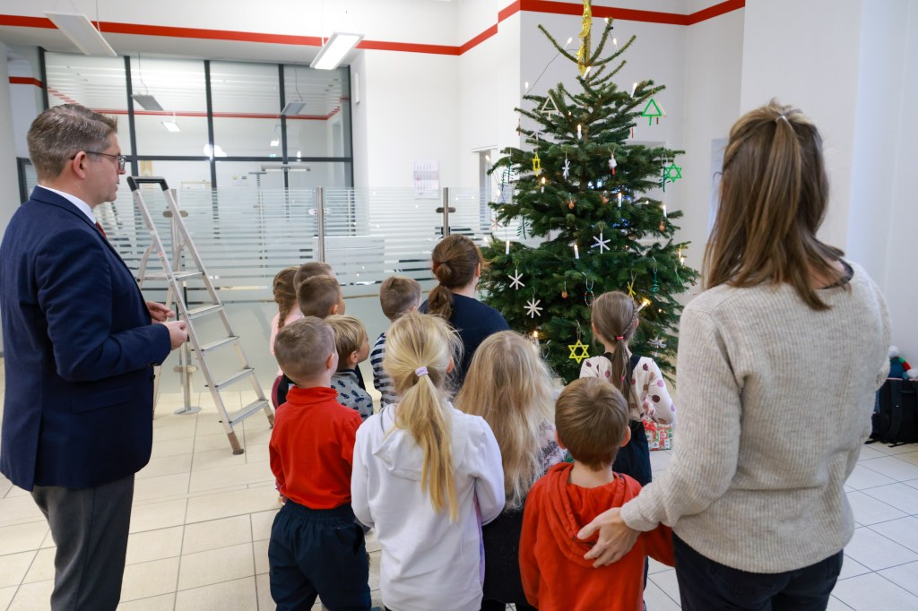 Das Schmücken des Baumes ist inzwischen eine feste Tradition: Jedes Jahr übernimmt ein anderer Kindergarten aus Rudolstadt diese Aufgabe und trägt so zur vorweihnachtlichen Gestaltung des Bürgerservices bei.