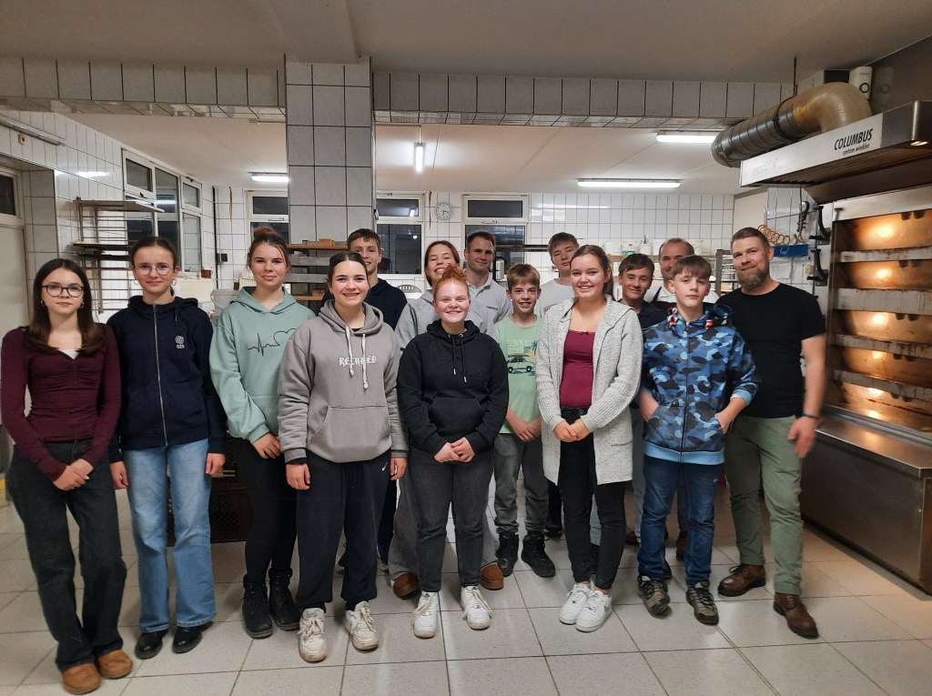 In diesem Jahr hat sich der Termin in die Adventszeit verschoben. Anstatt Reformationsbrötchen und Muffins standen am späten Donnerstagnachmittag neben Brot nun Weihnachtsplätzchen und Lebkuchen auf dem Programm. Doch zunächst machten die beiden Bäckermeister Achim und André Becher die 12 Konfirmanden mittels Führung durch die Backstube mit den Arbeitsabläufen und den vorhandenen Maschinen, wie Brotteig-, Rühr- und Semmelwirkmaschine und Kneter, bekannt.