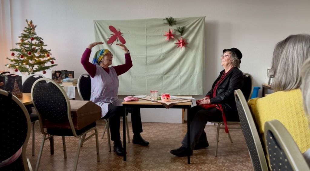Weiter ging es mit einem visuellen Beitrag des in Deutschland einmaligen Pfefferkuchenmarktes in Pulsnitz mit Informationen zur Baumkuchenherstellung. Und auch zwei lustige Sketche von den Landfrauen Jutta und Gabi standen auf dem Programm des letzten Zusammentreffens im alten Jahr.