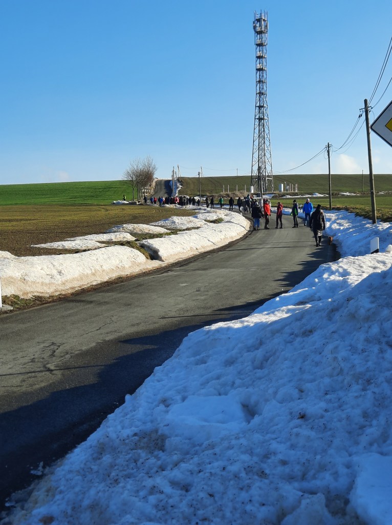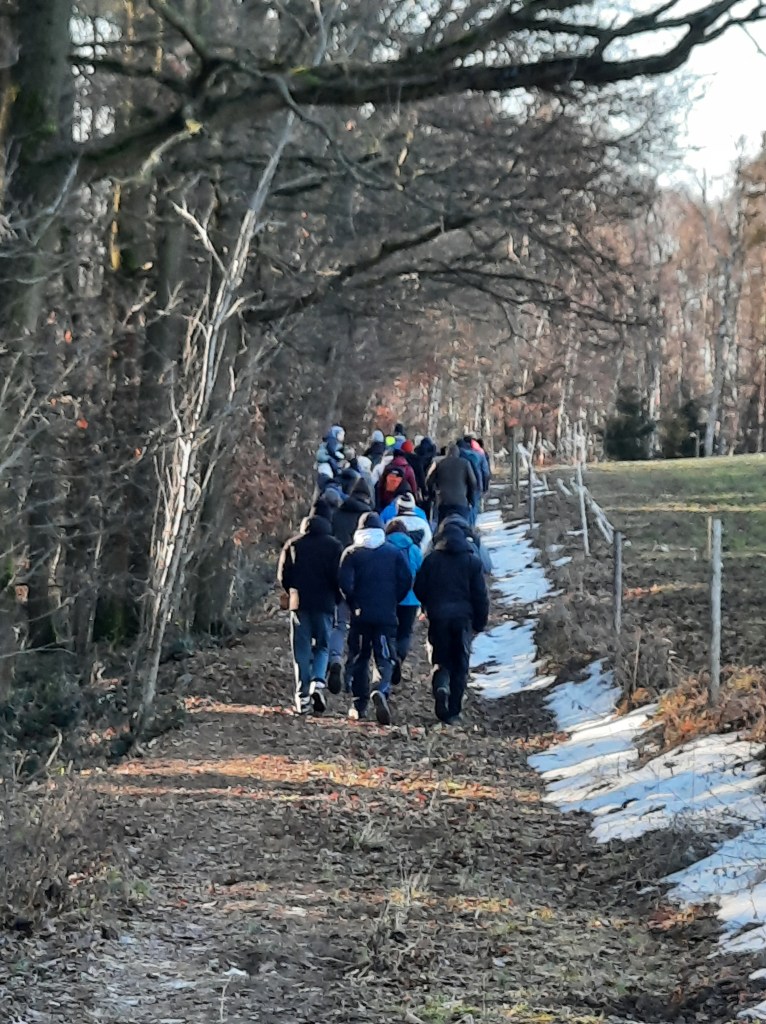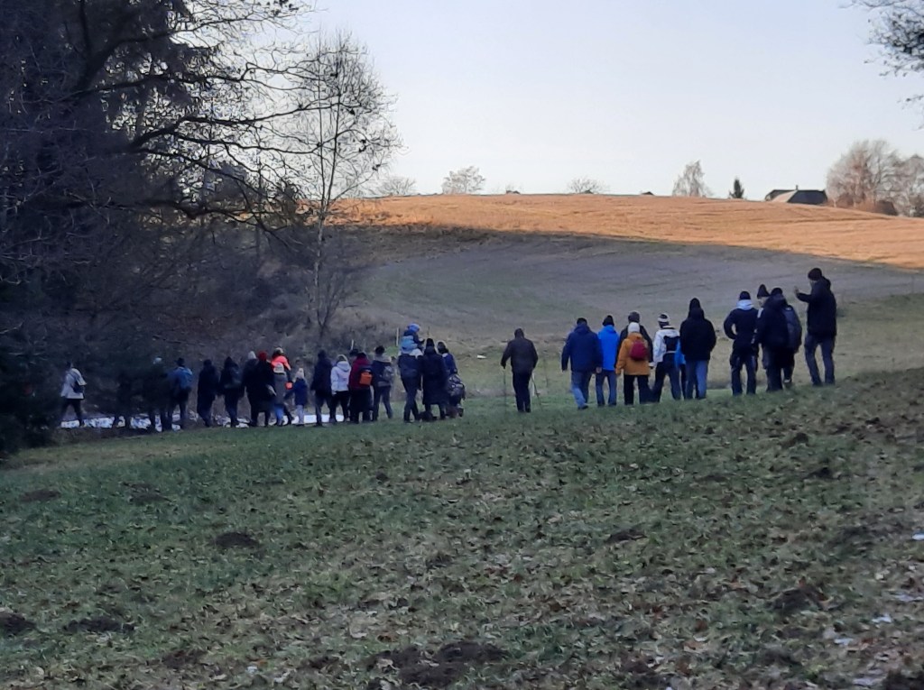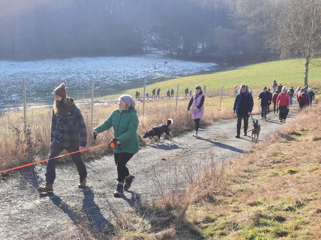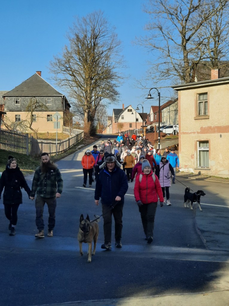 Mit blauem Himmel, Sonnenschein pur, leichten Plusgraden und Restschnee war am Sonntagmittag das ideale Wanderwetter für die 21. Bernsgrüner Familienwinterwanderung. Knapp 60 Wanderlustige aus Arnsgrün, Bernsgrün, Schönbrunn, Auma, Zickra, Pausa, Wallengrün und am weitesten aus Magdeburg nahmen deshalb die Einladung des Feuerwehrvereins Bernsgrün dankend an. Jüngster Teilnehmer war mit fünf Monaten Helmut, der allerdings die gesamte Tour in Mamas Tragetuch verschlafen hat. Dafür haben sich seinen älteren Brüder Hans und Hektor (zwei und vier Jahre) tapfer geschlagen. Auch Mitglieder der Jugendfeuerwehr und Frauensportgruppe Bernsgrün sowie „Wiederholungstäter“ aus den Vorjahren gingen mit sieben Hunden die von Romy Anschütz und Sven Weiland ausgesuchte rund sieben Kilometer lange Strecke mit bester Wanderstimmung an. Vom Feuerwehrhaus führte die Wanderung auf dem landwirtschaftlichen Weg in Richtung Frotschau, wo kurz vor der Frotschauer Höhe links auf den Mühlweg abgebogen wurde. Von dort hatten alle eine wunderbare Sicht auf den Ort Bernsgrün, bevor es links steil bergab und dann wieder bergauf in Richtung ehemalige Rennstrecke Arnsgrün ging. Dort wurde eine Rast mit Getränkeversorgung durch die Feuerwehrvereinsmitglieder eingelegt. Danach wanderten alle über Wiesen und durch Wälder am Buchberg zum Feuerwehrhaus zurück, wo sich die Wanderer mit Steaks, Tee und Glühwein stärkten. Fazit eines Aumaer Ehepaares: „Die Strecke hat uns gut gefallen. Aber die Hauptsache ist doch bewegen, bewegen, bewegen“. Ein Dankeschön und Lob für die Organisation und Durchführung gab es am Ende verdientermaßen für den Feuerwehrverein.