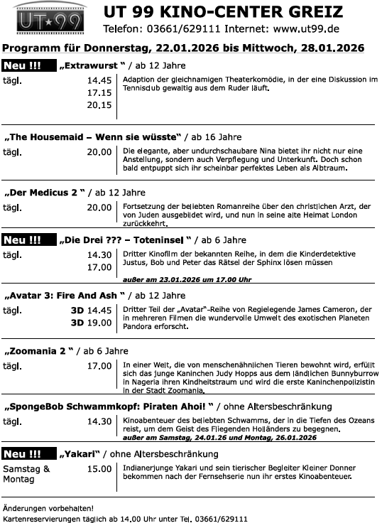 „Extrawurst“, „Die drei ??? -Toteninsel“ und „Yakari“ neu im Programm.