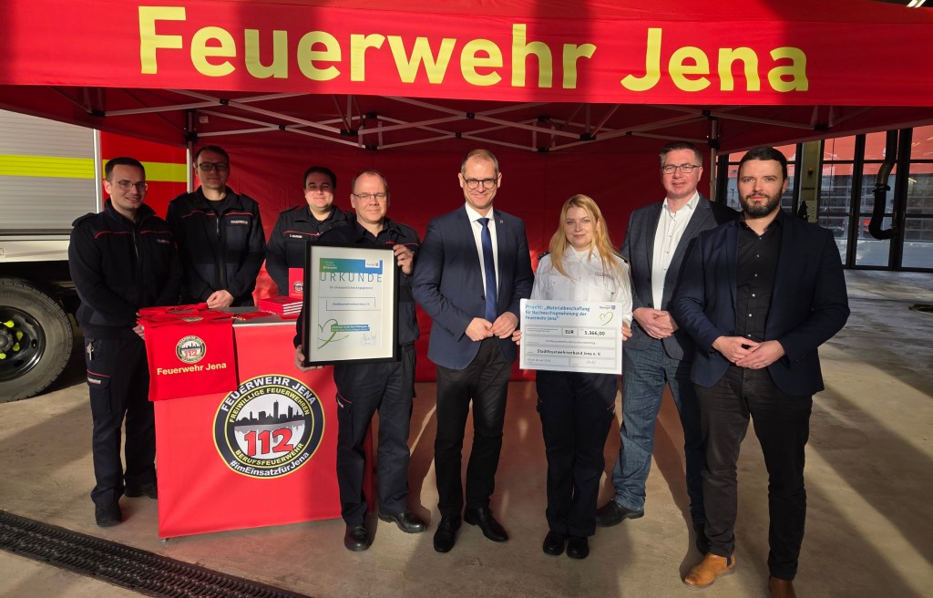 Der Stadtfeuerwehrverband Jena e. V. hat am heutigen Freitag, 23. Januar, einen symbolischen Förderbescheid über 5.000 Euro erhalten. Die Mittel stammen aus einem Förderprogramm der Thüringer Staatskanzlei und sind zweckgebunden für Maßnahmen zur Mitgliedergewinnung in der Freiwilligen Feuerwehr.