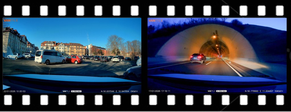 Bereits auf der ersten Testfahrt meldete das System erfolgreich abgeschlossene Kalibrierungen. Für mich besonders entscheidend war jedoch nicht die Performance bei optimalen Lichtverhältnissen, sondern die Bildqualität bei wechselndem Licht und in der Nacht.