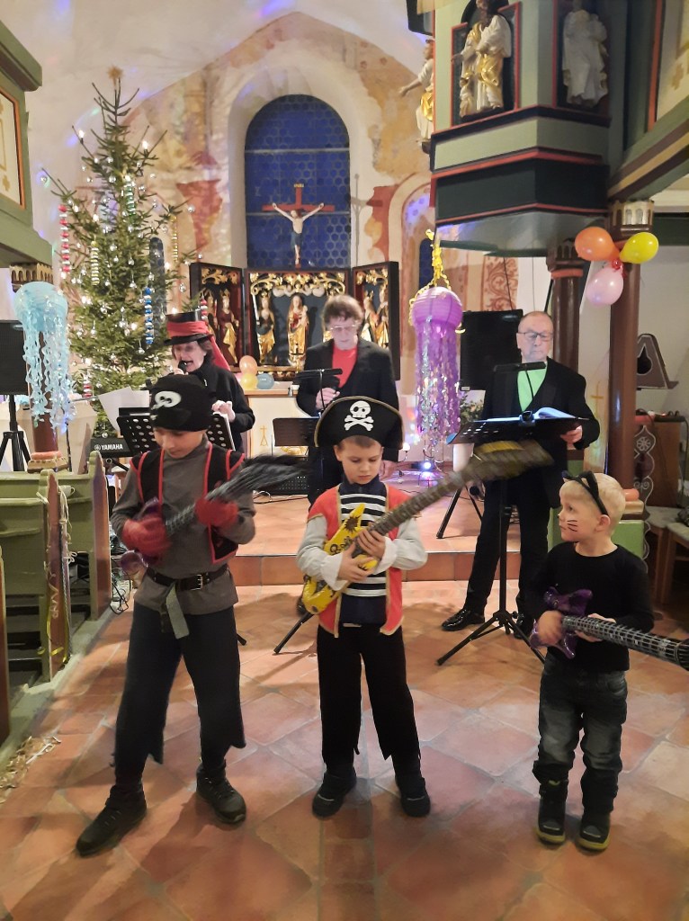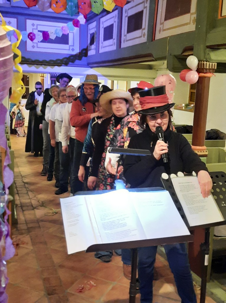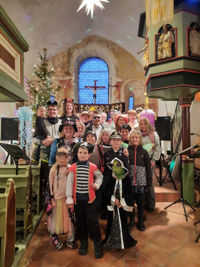 Aufgefallen ist auch Gemeindekirchenrat Joachim Suschke, dem über Nacht zur Freude aller lange blaue lockige Haare „gewachsen“ sind. Und natürlich fehlten auch Pfannkuchen und diverse Getränke nicht. Und für die ausgeschmückte Kirche sorgten dankenswerterweise Doris Tröger, Susann Neumeister, Kathrin Decker und Stefanie Gradl. Dieser etwas andere Gottesdienst weckt schon jetzt Vorfreude auf den 2027.