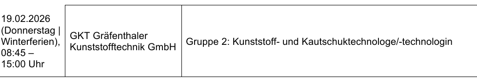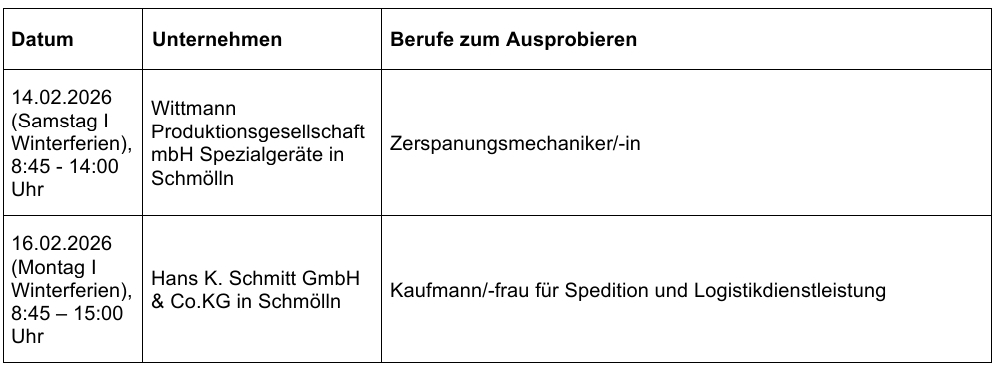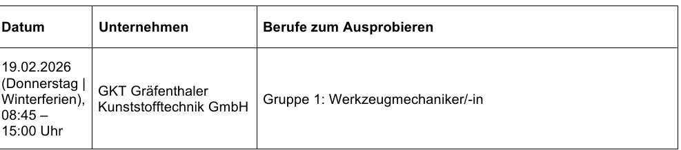 Das erfolgreiche Format ermöglicht es Jugendlichen, einen Tag lang ganz praktisch erste Erfahrungen in verschiedenen Berufen zu sammeln. Dabei bearbeiten die Teilnehmerinnen und Teilnehmer typische Aufgaben aus dem Berufsalltag und lernen unterschiedliche Tätigkeitsfelder direkt im Unternehmen kennen. Auch Eltern sind eingeladen, zu Beginn der Praktika an einem Rundgang teilzunehmen und sich aus erster Hand über Ausbildungs- und Karrierechancen zu informieren.