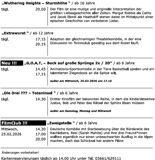 Vier neue Filme im Programm und am kommenden Mittwoch gibt’s im FilmClub eine Deutsche Komödie mit Starbesetzung. Insgesamt flackern ab morgen sage und schreibe elf verschiedene Filme über die Leinwand.