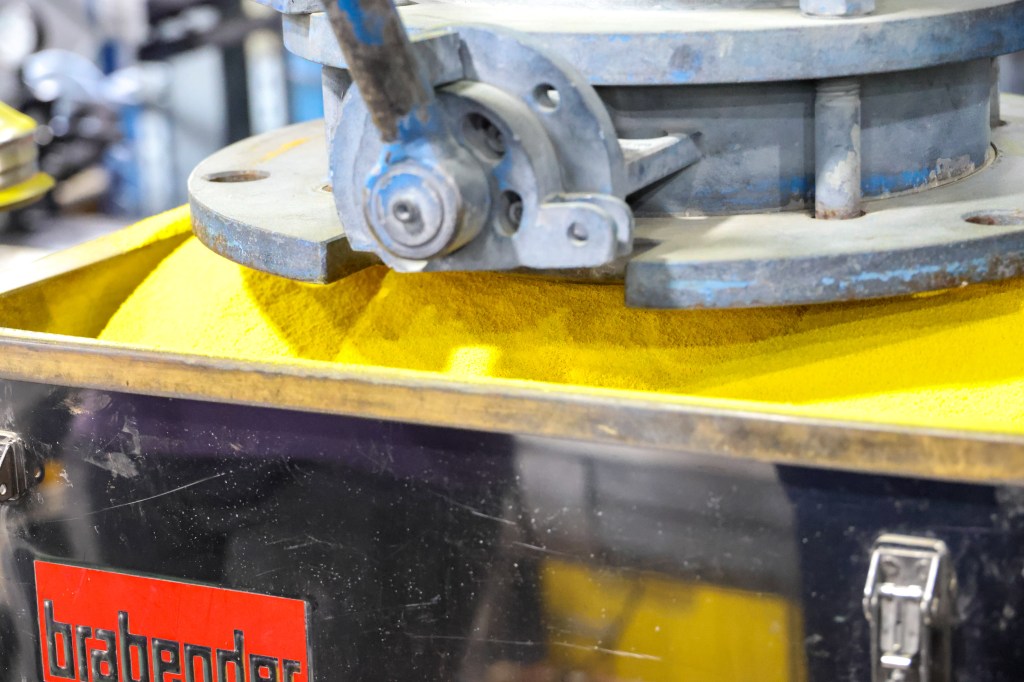 Der Herstellungsprozess wurde beim Termin anschaulich demonstriert: In großen Maschinen, den sogenannten Extrudern, werden Kunststoff, Farbpigmente und Zusatzstoffe unter Hitze miteinander verschmolzen. Die flüssige Masse tritt am Ende der Maschine in Form von dünnen Kunststofffäden aus. Diese „Fäden“ laufen zur Abkühlung durch ein Wasserbad und werden im nächsten Schritt von einer Schneidemaschine zu exakt gleichmäßigem Granulat verarbeitet. Das fertige Produkt wird verpackt und weltweit an Hersteller versandt, die daraus bunte oder funktionale Kunststoffprodukte – vom Porsche-Bauteil bis zum Coca-Cola-Flaschendeckel – fertigen.