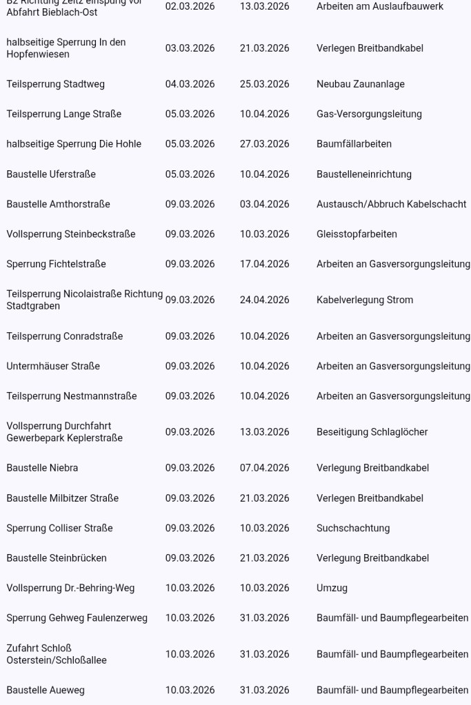 Ab 9. März gibt es 20 neue Sperrungen