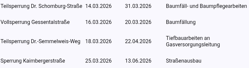Die Stadt informiert über aktuelle Verkehrseinschränkungen aufgrund von Baumaßnahmen: