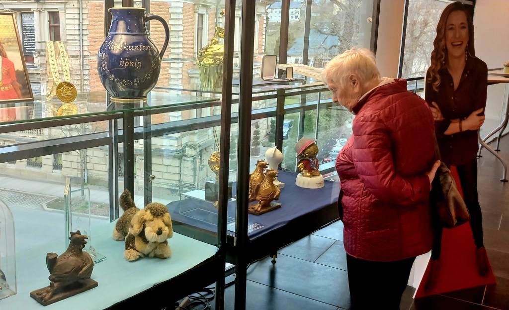 Diese Ausstellung macht nun in Greiz Station und wurde gestern in der Vogtlandhalle eröffnet. Im Oberren Foyer des Hauses sind Tonträger, Preise und Auszeichnungen, aber auch die Titelseiten von Zeitschriften und nicht zuletzt einige Kleider und Bühnenrequisiten zu sehen. Fotos über Fotos sowie Fanartikel und -geschenke stellen ihre enge Verbundenheit zur vogtländischen Heimat und zu ihrem Publikum in den Vordergrund. Die Exponate laden zu einer facettenreiche Zeitreise durch das Leben der Künstlerin ein. Erinnert wird auch an ihren Beitrag zu „Ella, eine Vogtlandsaga“, zu der Stefanie Hertel gemeinsam mit der Vogtland-Philharmonie Greiz/Reichenbach musikalische Parts beigesteuert hat. „Stefanie Hertel war meine Traum-Ella, sagte mal die Produzentin Sabine Maria Schoeneich“, berichtete Vogtlandhallen-Chefin Melanie Staege zur Ausstellungseröffnung.