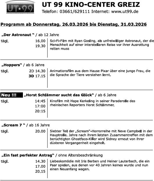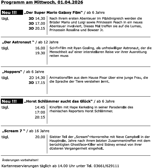 „Horst Schlämmer sucht das Glück“ neu im Programm. Und am nächsten Mittwoch kommt auch der Der „Super Mario Galaxy Film“ nach Greiz. Damit werden in Greiz wieder sechs Filme für jedes Alter und (fast) jedes Interesse gezeigt.