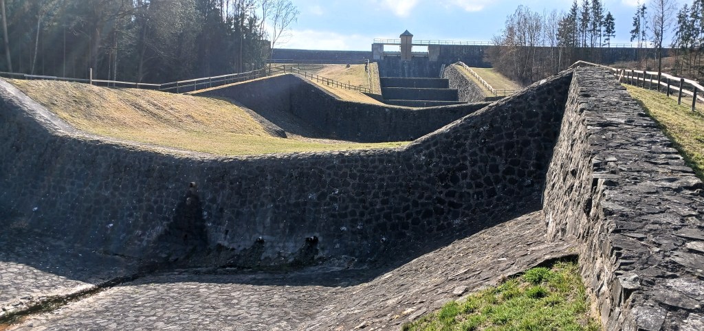 Auch wenn die Weidatalsperre wenig Österliches und auch wenig Wasser hat, ist die wasserwirtschaftliche Anlage auch in diesen Tagen einen Besuch wert. Denn die Talsperre wird grundhaft saniert, seit 2024 wurde das Wasser abgelassen und der Leerstand des großen Staubeckens ermöglicht Einblicke in sonst nicht sichtbare Gefilde.