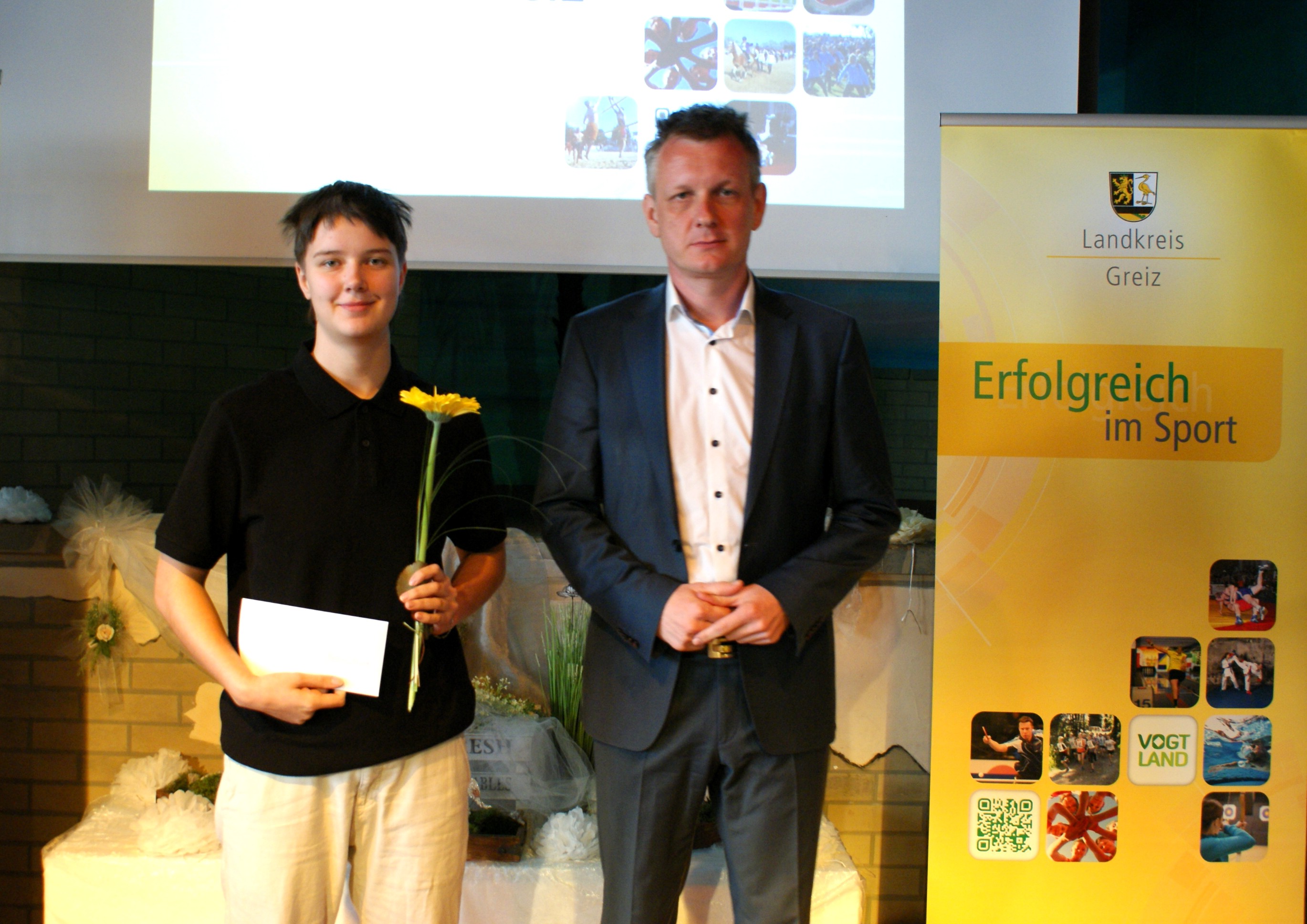 Insgesamt ehrten Landrat Schäfer und der Vorsitzender des Ausschusses für Schule, Kultur und Sport im Kreis Greiz, Jens Dietzsch, am Freitag insgesamt 69 „Meister des Sports“, wobei das Altersspektrum von den elfjährigen Anni Zippler (Verein für Deutsche Schäferhunde), Annabell Liedke und Pit Müllenberg (beide Karate Kampfsport Hohenleuben) bis zur über 80-jährigen Speerwerferin Christa Bensch vom SV Blau Weiß Auma reichte.