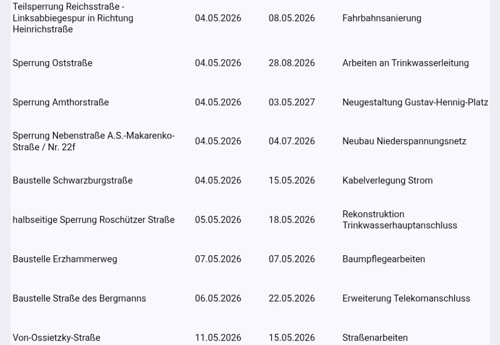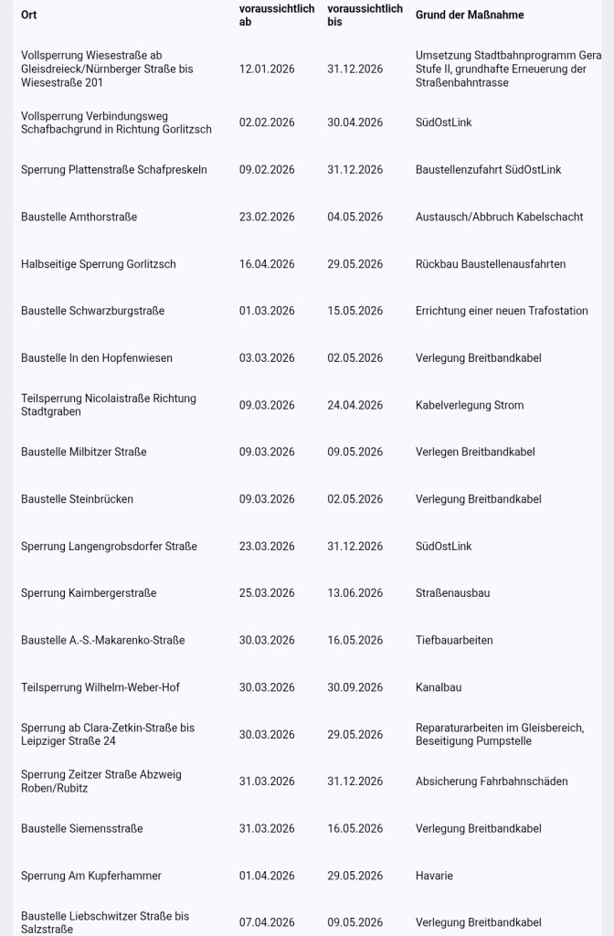 Weitere Informationen zum Verkehr und zu aktuellen Baustellen auch im Geoportal der Stadt Gera unter www.gera.de/verkehrsmeldungen.